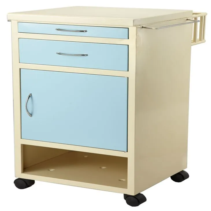 It is typically equipped with drawers and a cabinet door, allowing patients to store personal items and medical staff to keep medical supplies. Towel racks are usually installed on both sides of the cabinet, and some models also come with a retractable meal tray. Equipped with casters at the bottom, it can be easily moved within the ward.